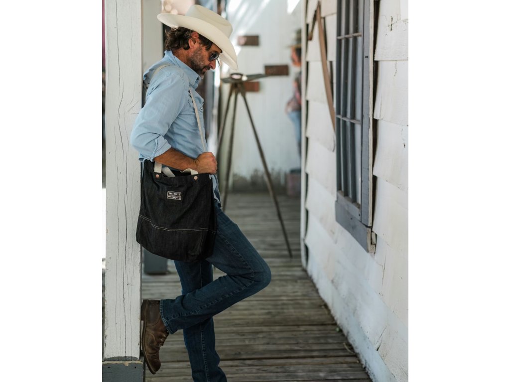 Základem je 14,5 oz (≈ 492 g/m²) voskovaná bavlněná džínovina, ošetřená přírodním včelím voskem. Materiál je vodoodpudivý, odolný vůči skvrnám a snadno se čistí. Stejně jako kvalitní džíny časem měkne a získává charakteristickou patinu, která dává každé tašce osobitý vzhled.